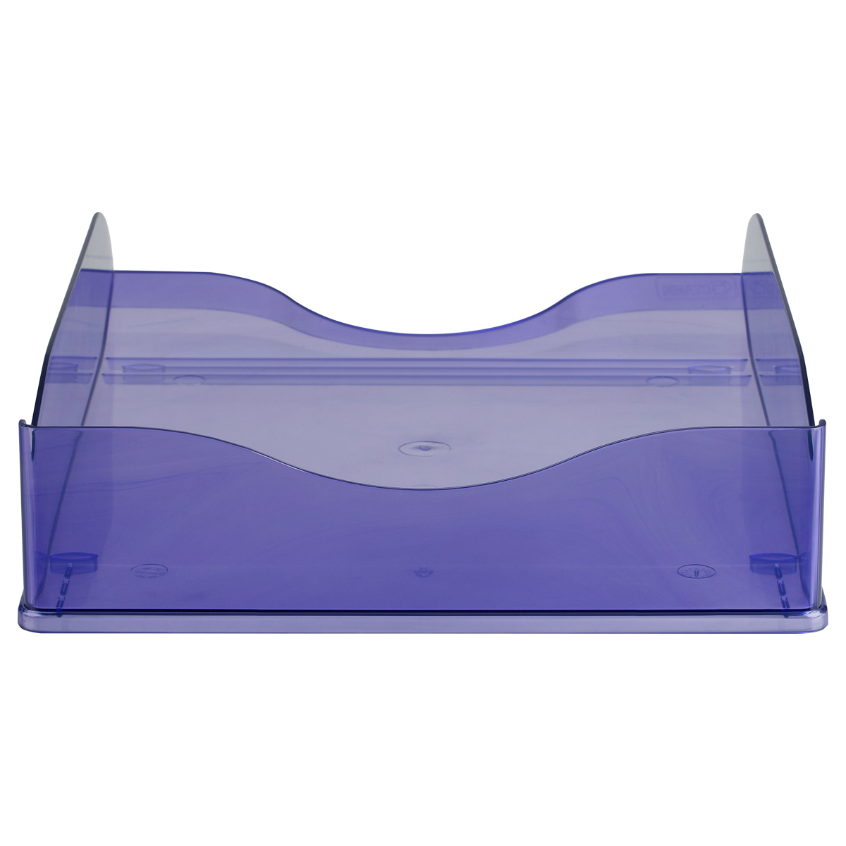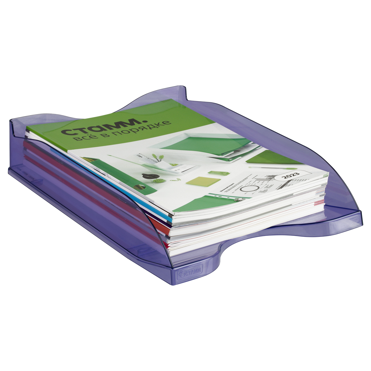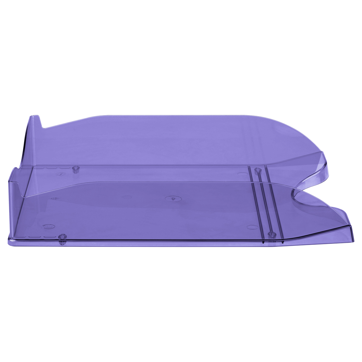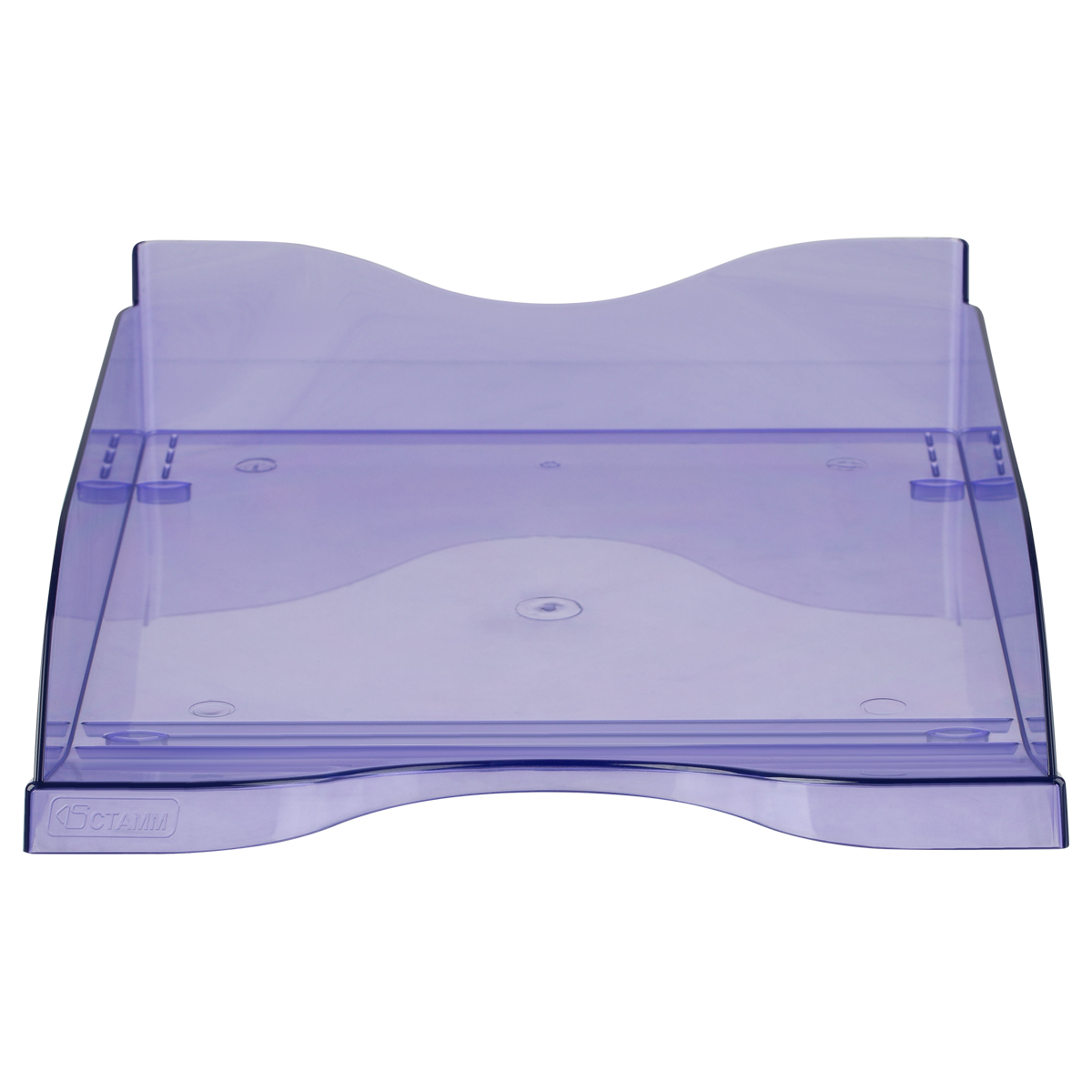 Предусмотрена возможность установки одного лотка на другой. Лоток изготовлен из качественного пластика. Материал известен своей долговечностью и устойчивостью к ударам, поэтому изделие отличается надёжностью. Изделие высотой , глубиной 345мм и шириной вмещает до 400 листов. Цвет - тонированный фиолетовый.