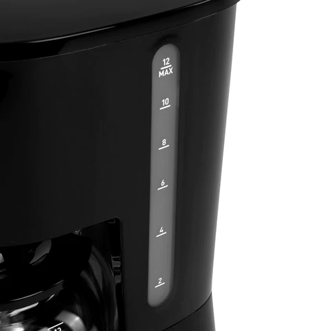 Кофеварка оснащена многоразовым нейлоновым фильтром, который удобно мыть после использования. Корпус из прочного пластика обеспечивает долговечность и надёжность устройства. Резервуар ёмкостью 1,8 л позволяет за один раз приготовить кофе на 14 чашек объёмом 120 мл. Прозрачный корпус кофейника позволяет всегда видеть, сколько кофе осталось.