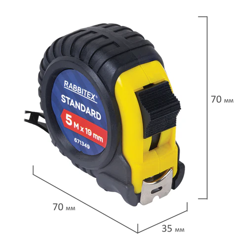 Рулетка RABBITEX проста в обращении, обладает повышенной износостойкостью и долгим сроком службы. Корпус рулетки из прочного пластика с прорезиненным покрытием обеспечит защиту инструмента от повреждений при случайном падении. Измерительная лента с метрической шкалой II класса точности изготовлена из прочной углеродистой стали, устойчивой к заломам, и оснащена зацепом для удобства измерений. Рулетка оснащена ремешком для ношения на запястье, а также металлической клипсой для крепления на поясе. Эргономичный дизайн с вертикальным фиксатором измерительной ленты позволят использовать рулетку даже одной рукой.
