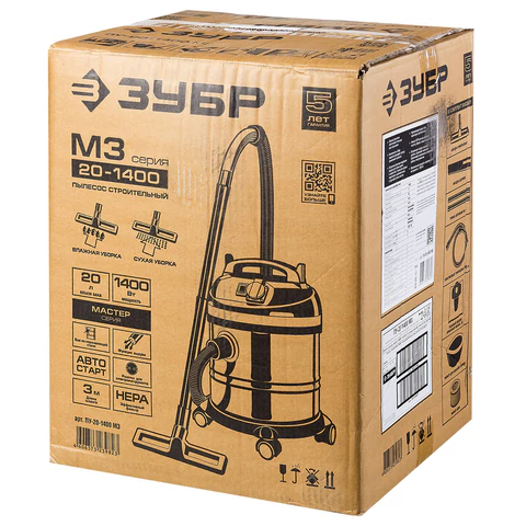 Хозяйственный пылесос ЗУБР ПУ-20-1400 гарантирует превосходные результаты сбора сухого и влажного мусора как мелких, так и крупных размеров. С пылесосом ЗУБР выполнять повседневные задачи станет проще, чем когда-либо!