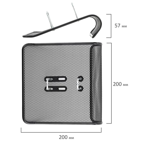 Изготовлена из металлической сетки черного цвета. Оснащена регулируемыми кольцами. Размер – 57х200х200 мм.