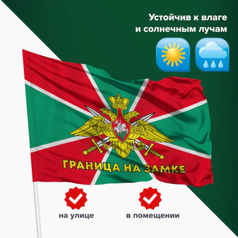 Флаг Пограничных войск России "ГРАНИЦА НА ЗАМКЕ" - отличный подарок для пограничников, для тех, кто служил и служит в Пограничных войсках России, а также для всех интересующихся военно-патриотической тематикой.