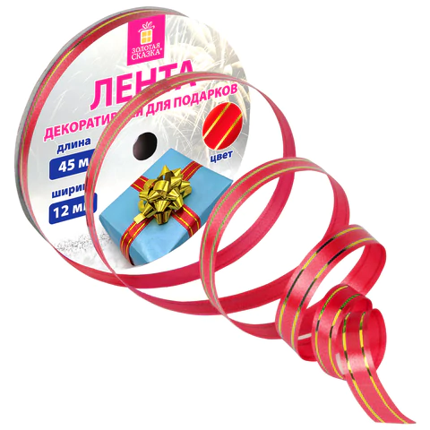 Лента упаковочная декоративная для шаров и подарков металлик 5мм*250м красная, ЗОЛОТАЯ СКАЗКА 591817
