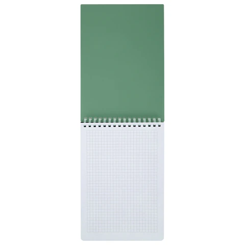 Прочная пластиковая обложка надежно защищает внутренний блок от повреждений и влаги, продлевая срок службы блокнота. Обложка из пластика имеет фактурную поверхность под кожу. Внутри – 80 листов высококачественной офсетной бумаги плотностью 70 г/м2 и белизной 100%, обеспечивающей комфортное письмо. Линовка блока – клетка. Листы скреплены мягким силиконовым гребнем, что обеспечивает удобство использования блокнота. Универсальный формат А5 делает его отличным выбором для учебы, работы и повседневного использования.