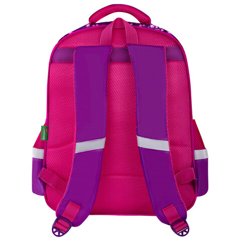 В основном отделении рюкзака можно легко и быстро разместить учебники и тетради формата А4+. Переднее отделение на молнии вмещает тетради и учебники формата А4. Большой передний карман на молнии из легкого формоустойчивого материала EVA предназначен для тетрадей и учебников формата А5, а также прочих канцелярских принадлежностей. Такая организация пространства поможет сохранить принадлежности в порядке и приучить ребенка к аккуратности.