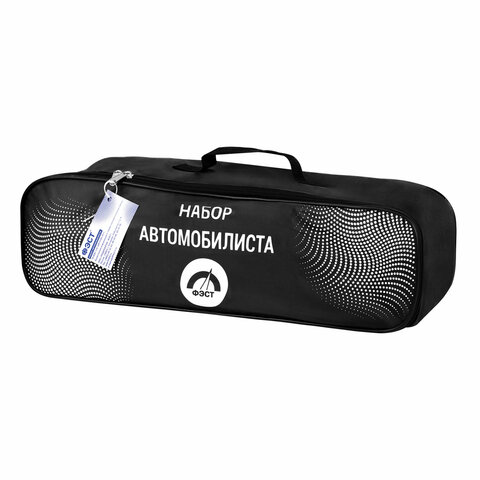Набор для авто включает всё необходимое для безопасного путешествия. Это комплект автотоваров, которые помогут решить основные задачи на дороге. Сумка автомобилиста удобно помещается в багажнике, занимая минимум пространства. Все предметы в аварийном комплекте отличаются высоким качеством. Такой набор станет незаменимым дополнением к вашему набору инструментов для авто.