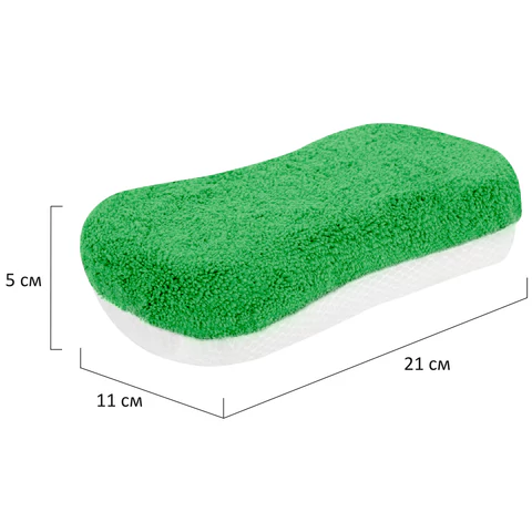 • Мочалка имеет двойной функционал. С одной стороны, она является губкой из микрофибры и подходит для бережного вспенивания и мойки автомобиля, также она способна впитывать большое количество жидкости, не оставляя разводов. С другой стороны, это сеточка из полиэстера для удаления стойких пятен с поверхности кузова автомобиля. Плотность микрофибры – 450 г/м2. Край обработан оверлоком. Цвет – зеленый.
