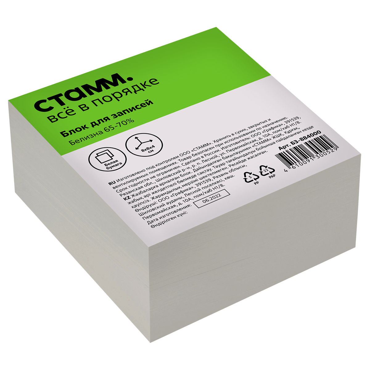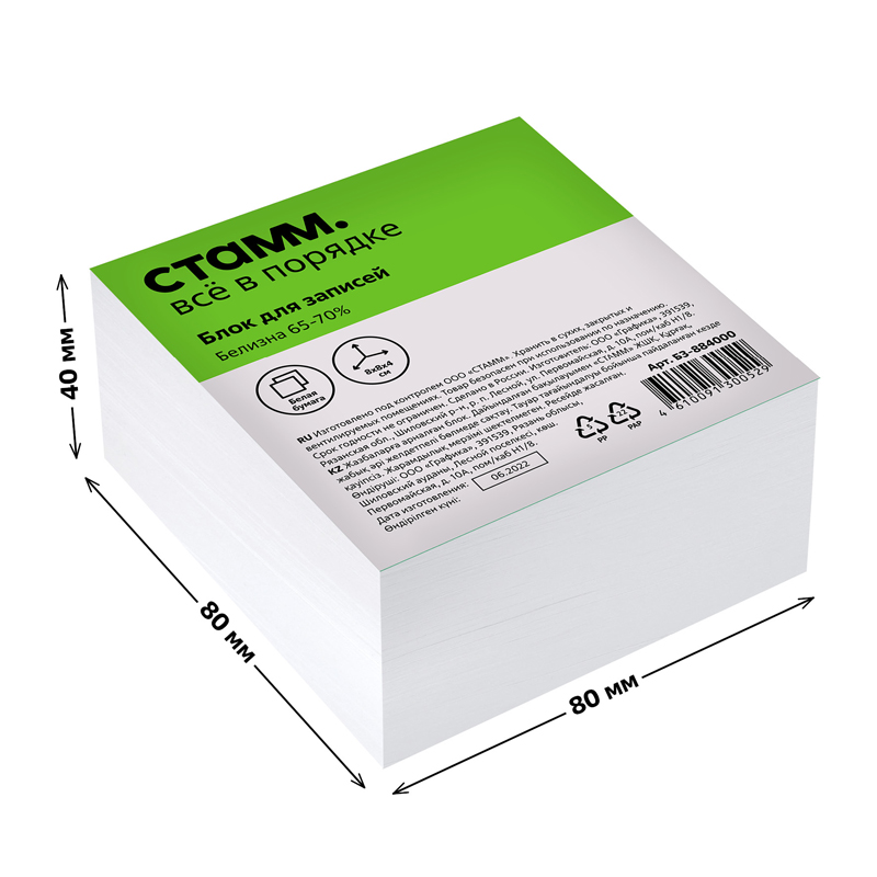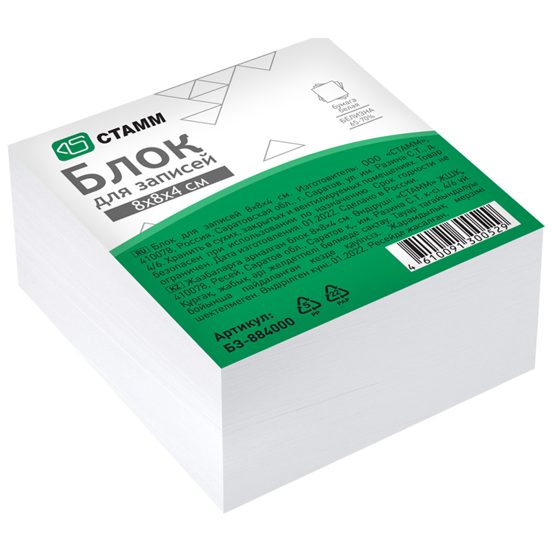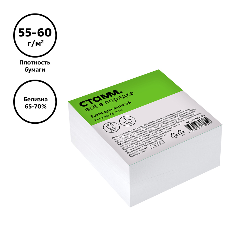 • Цвет бумаги блока: белый;