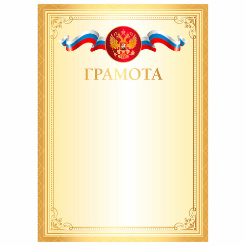 Изготовлена из импортного мелованного картона. Плотность картона в 200 г/м2. позволяет печатать текст на принтере (кроме струйного). Грамота оформлена в соответствии со всеми стандартами, что придает ей официальный статус. Имеется изображение российской символики. Формат А4 позволяет вставить грамоту в рамку и расположить на удобном месте.