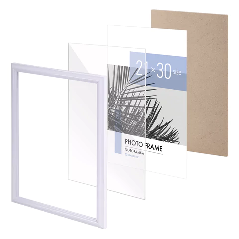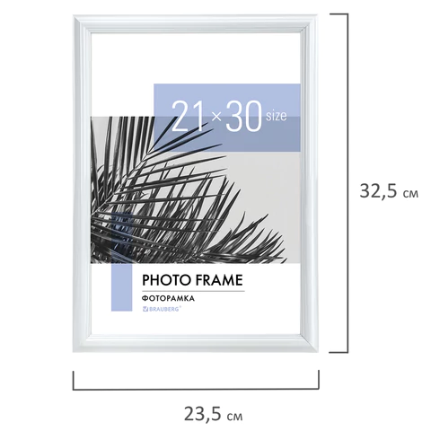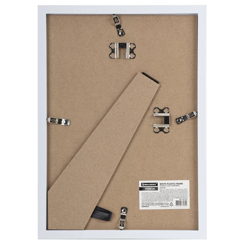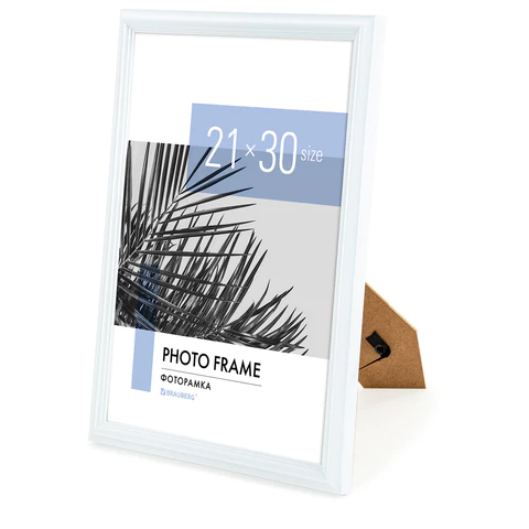 Рамка стандартного формата А4 (21х30 см) выполнена из ПВХ в классическом беломм цвете, за счет чего отлично впишется как в домашний, так и в деловой интерьер. Имеется возможность вертикального и горизонтального подвеса, а также имеется подставка для установки рамки на столе.