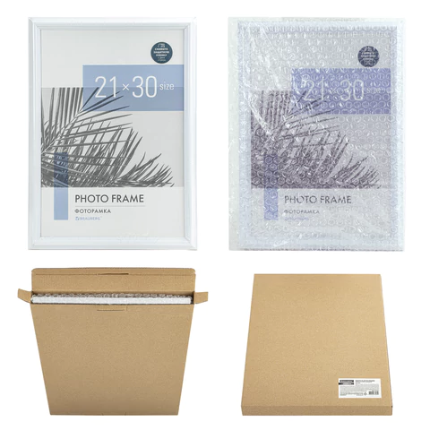 Задняя панель выполнена из прочного МДФ. Рамка поставляется в термоусадочной плёнке. Для дополнительной защиты от сколов и потертостей она упакована в пупырчатую пленку и индивидуальный трехслойный гофрокороб.