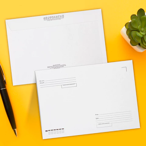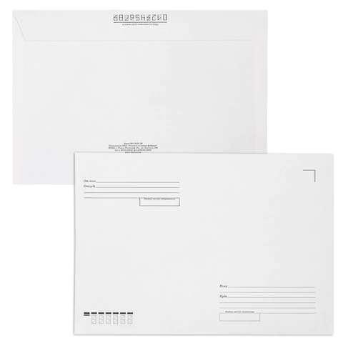 В конверт формата C4 можно вложить документ формата А4. На передней стороне конверта имеются адресные указатели: "Куда", "Кому", "От кого", "Откуда". Плотность бумаги 100 г/м2 позволяет размещать тяжелую корреспонденцию и скрывать содержимое от посторонних глаз. Отрывная полоса типа STRIP обеспечивает надежное запечатывание конверта и сохранность личного письма или важного документа.