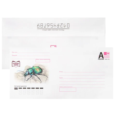 В конверт формата E65 можно вложить документ формата А4, сложенный втрое. На передней стороне конверта имеются адресные указатели: "Куда", "Кому", "От кого", "Откуда". Плотность бумаги 80 г/м2 позволяет размещать тяжелую корреспонденцию. Отрывная полоса типа STRIP обеспечивает надежное запечатывание конверта и сохранность личного письма или важного документа. Товар поставляется в нескольких вариантах дизайна (без возможности выбора).