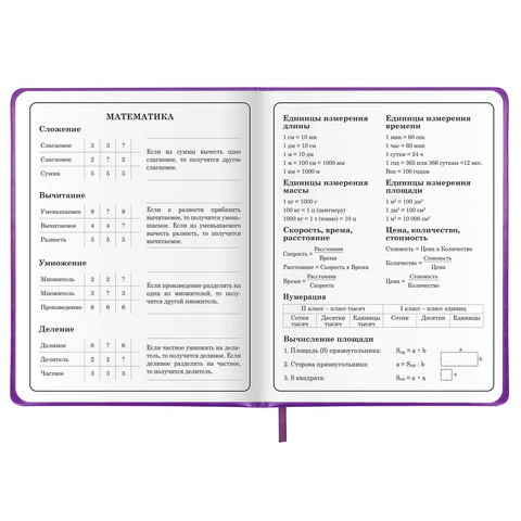 Предназначен для учащихся начальных классов. Твердая обложка из экокожи надежно защищает бумагу и долго сохраняет привлекательный внешний вид. Внутренний блок содержит 48 листов и состоит из офсетной белой бумаги плотностью 70 г/м2. В справочном материале собраны основные подсказки для учащихся. Для удобства пользования дневник снабжен закладкой-ляссе.