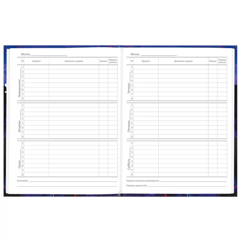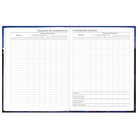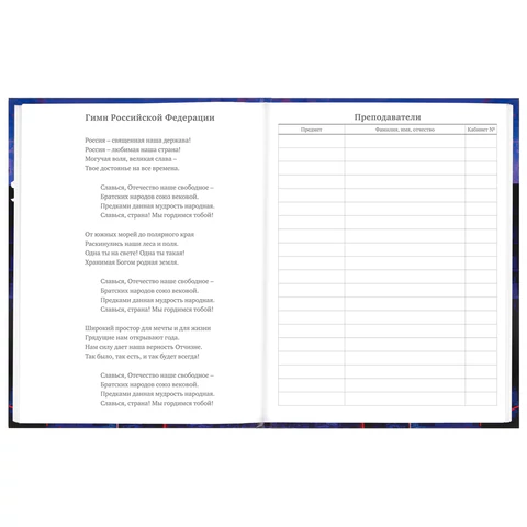Предназначен для учащихся 5-11 классов. Твердая обложка надежно защищает бумагу и долго сохраняет привлекательный внешний вид. Благодаря глянцевой ламинации краски на изображении становятся более яркими и насыщенными, исключается возможное истирание рисунка. Внутренний блок содержит 48 листов офсетной белой бумаги плотностью 60 г/м2. Дневник снабжен полезным справочным материалом для учащихся.