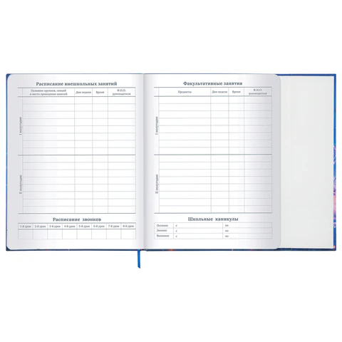 Предназначен для учащихся 1-11 классов. Твердая обложка с матовой ламинацией надежно защищает бумагу и сохраняет привлекательный внешний вид. Дневник снабжен магнитным клапаном, благодаря чему он не раскроется в портфеле или рюкзаке и листы не помнутся. Для удобства пользования дневник снабжен закладкой-ляссе. Внутренний блок содержит 48 листов офсетной белой бумаги плотностью 60 г/м2. В справочном материале собраны основные подсказки для учащихся.