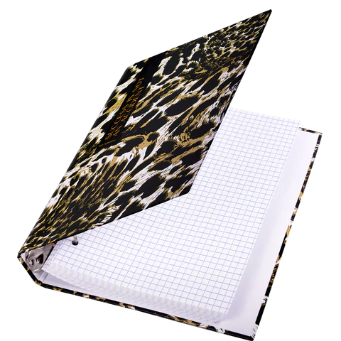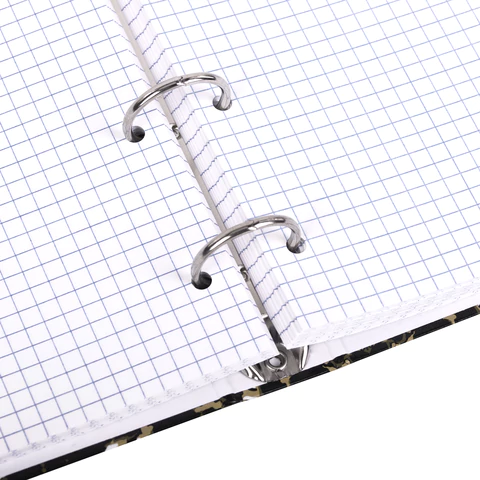 Снабжена кольцевым механизмом с 4 кольцами для подшивки сменных блоков, что позволит брать на учебу/работу всего одну тетрадь с возможностью добавлять и менять листы.