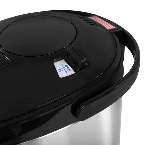 На корпусе размещена шкала уровня воды для контроля объема жидкости. Корпус дополнен прочной ручкой для удобного переноса устройства. Модель имеет вращающуюся подставку – вы можете поворачивать термопот в любую сторону, не поднимая над столом.
