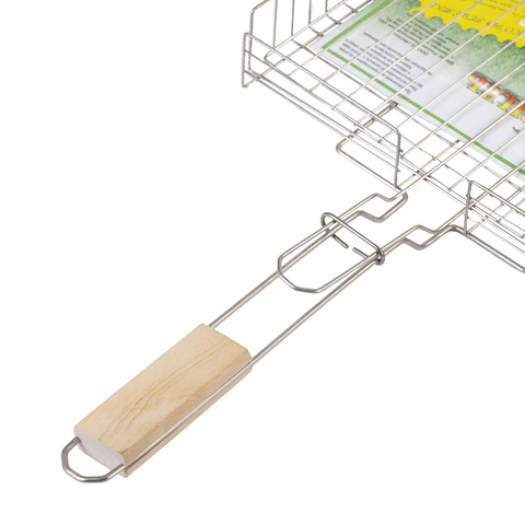 Прутики из прочной стали выдерживают высокие температуры и обеспечивают долгий срок службы. Никелированное покрытие защищает от коррозии, устойчиво к огню и безопасно для здоровья. Конструкция плотно закрывается и надёжно удерживает продукты при готовке. Деревянная рукоятка не нагревается, удобно ложится в руку и защищает от ожогов.