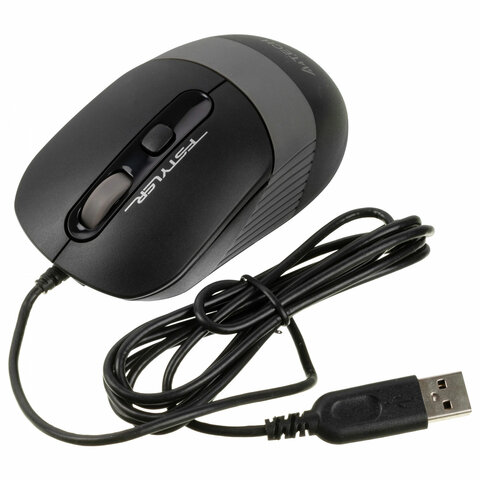 Мышь проводная A4Tech FStyler FM10 облачена в черно-серый пластиковый корпус без подсветки. Такой классический дизайн не будет отвлекать владельца от работы. Еще одно достоинство устройства – возможность использования как правой, так и левой руками. К компьютеру модель подключается за счет кабеля длиной 1,5 м.