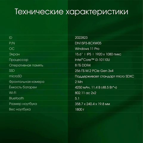 Ноутбук оснащен процессором Intel Core 10-го и 12-го поколения, а также модификациями с AMD Ryzen 5. Современный интерфейс PCIe 3.0x4 для встроенных SSD в пять раз увеличит скорость работы по сравнению с традиционными накопителями SATA III.