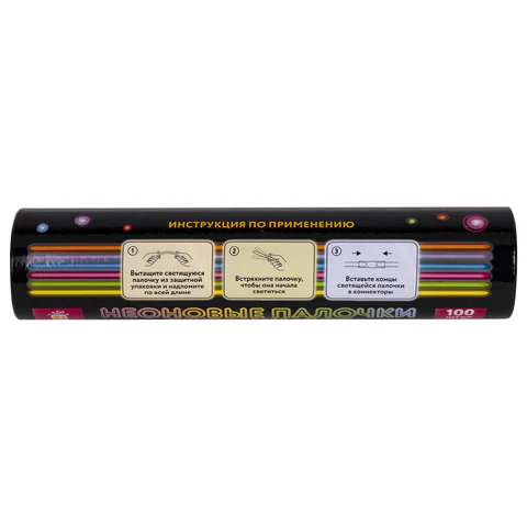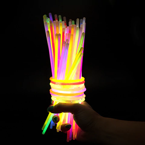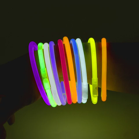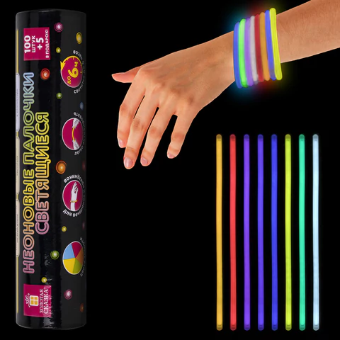 Дают неоновое свечение десяти разных цветов. Палочки водонепроницаемые и могут быть использованы в дождливую погоду и даже под водой на небольшой глубине. Светятся до 6 часов. Чтобы активировать палочку, нужно надломить её в нескольких местах и тщательно потрясти, чтобы свечение стало более равномерным. Вставив оба конца палочки в коннектор, можно создать яркий браслет.