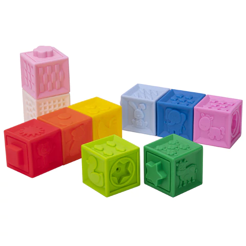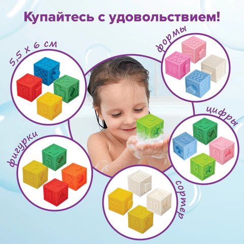 Тактильные кубики – это простая, но очень функциональная развивающая забава для малыша. Отлично подходят для игр в воде. Ребёнок будет купаться с удовольствием!