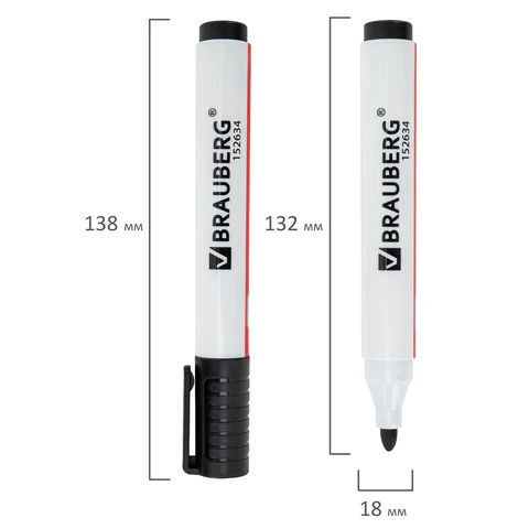 Цвет колпачка соответствует цвету чернил. Изделие не предназначено для повторной заправки. Маркер предназначен для письма на всех типах магнитно-маркерных поверхностей. Круглый пластиковый корпус обеспечивает удобное письмо.