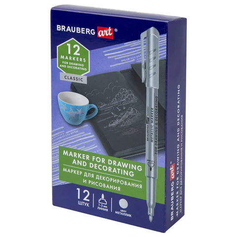 Маркер для декорирования и рисования BRAUBERG ART METALLIC - незаменимый помощник в воплощении ваших креативных идей! Приобретайте маркеры BRAUBERG по выгодной цене и подарите себе и своим близким радость творчества.