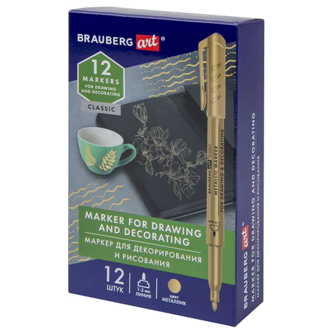 Маркер для декорирования и рисования BRAUBERG ART METALLIC - незаменимый помощник в воплощении ваших креативных идей! Приобретайте маркеры BRAUBERG по выгодной цене и подарите себе и своим близким радость творчества.