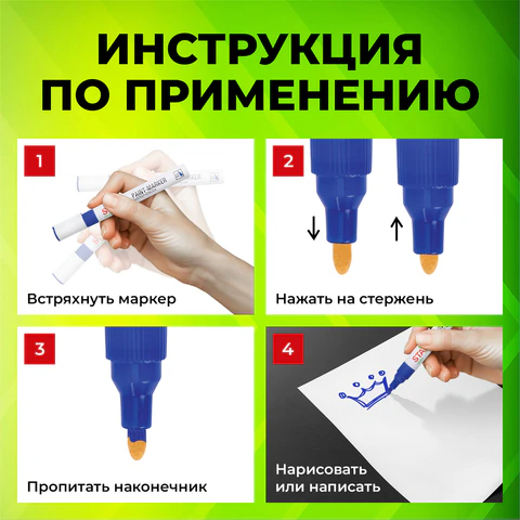 Быстросохнущие чернила предотвращают смазывание в процессе маркировки. После высыхания надписи становятся термо- и водостойкими, а также устойчивыми к выцветанию и механическому истиранию. Отлично подходит для маскировки бытовых дефектов, таких как царапины и сколы. Надежный помповый механизм подачи чернил предотвращает вытекание и разбрызгивание в процессе использования, а также преждевременное высыхание.