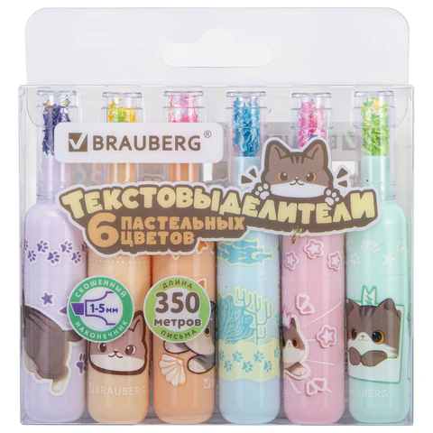 Облегчайте учебный процесс с качественными и безопасными текстовыделителями BRAUBERG "МИЛЫЕ КОТЫ"!