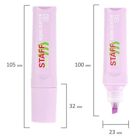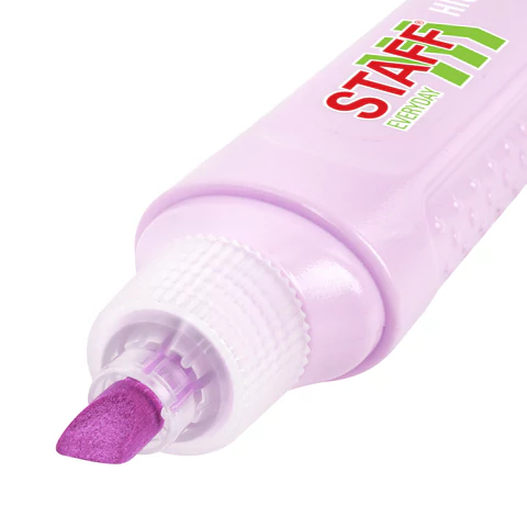 Текстовыделитель лавандового цвета обладает прямоугольной формой корпуса диаметром 24 мм. Корпус оснащен удобной зоной захвата. Скошенный наконечник имеет толщину линии письма от 1 до 5 мм, что обеспечивает удобство при работе с текстом, напечатанным мелким шрифтом, или таблицами.