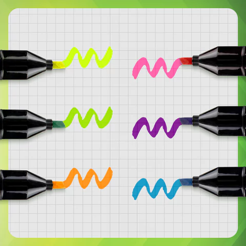 Текстовыделители из набора обладают экономным расходом чернил. Светоустойчивые чернила на водной основе не выцветают даже на открытом солнце и не размазываются в процессе использования. Изделия не перезаправляются. Колпачок с клипом и соответствует цвету чернил.