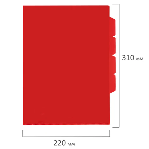 Папка формата А4 выполнена из высококачественного полипропилена плотностью 150 мкм. Она предотвращает смятие, загрязнение или намокание бумаг. Имеет 3 отделения, разделенных ярлычками. Непрозрачный материал способен скрыть содержимое от посторонних глаз. Данная папка заметно выделяется среди других благодаря насыщенному красному цвету.