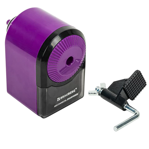 Корпус точилки выполнен из ударопрочного пластика. Вращающийся роликовый нож, изготовленный из высококачественной стали, обеспечивает быструю и острую заточку. Точилка имеет одно отверстие. Несомненным преимуществом данной точилки является возможность регулировки угла заточки в двух положениях. Кроме того, точилка обладает механизмом извлечения сломанного грифеля, что позволяет легко, в одно движение, извлечь застрявший грифель. Вместительным контейнер для сбора стружки позволяет точить дольше, не отвлекаясь на частую очистку контейнера. В комплект входит струбцина для крепления к столу. Диаметр затачиваемого карандаша - 8 мм. Размер точилки: 95х115х62 мм.
