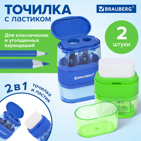 Точилки с ластиком 2 в 1 BRAUBERG "Double" – незаменимый помощник в учебе и работе! С ними ваши карандаши всегда будут остро заточены, а ластик пригодится при создании красивых рисунков и графики. Попробуйте точилки "Double" и оцените их добство и надежность!