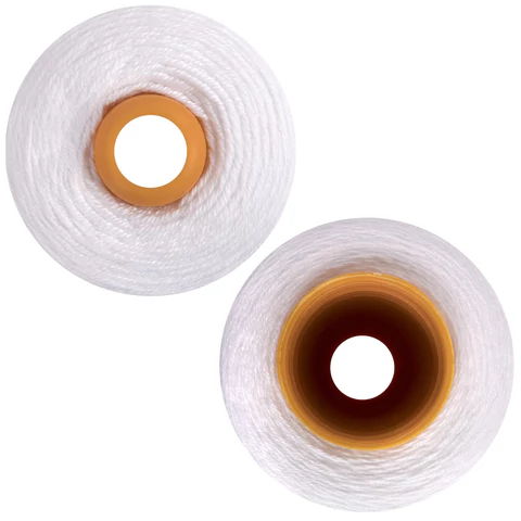 Нить диаметром 0,7 мм, скрученная из четырех высокопрочных полиэфирных нитей, намотана на конусную пластиковую бобину. Изготовлена из полиэфирного (лавсанового) волокна белого цвета. Мало подвержена воздействию ультрафиолетовых лучей. Не боится холода и сырости.