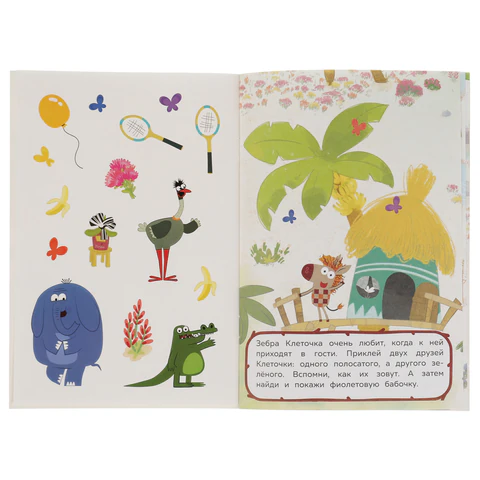 Яркие картинки, интересные наклейки и простор для творчества.