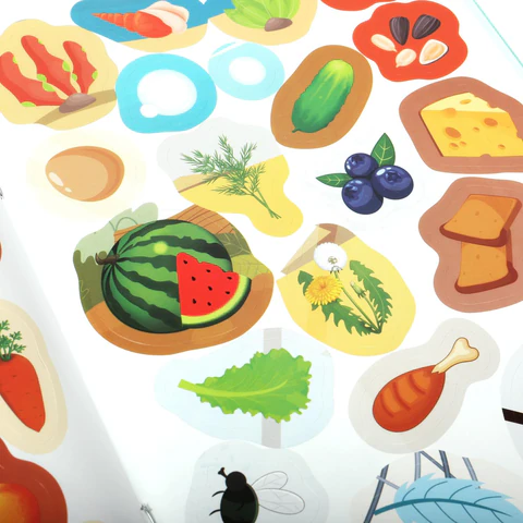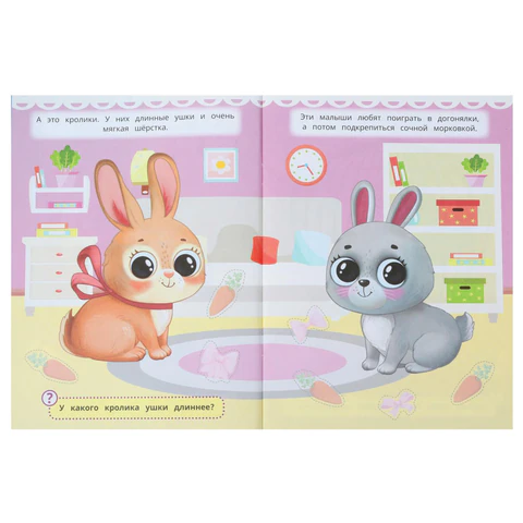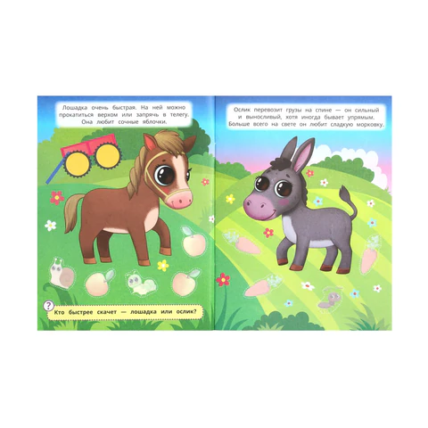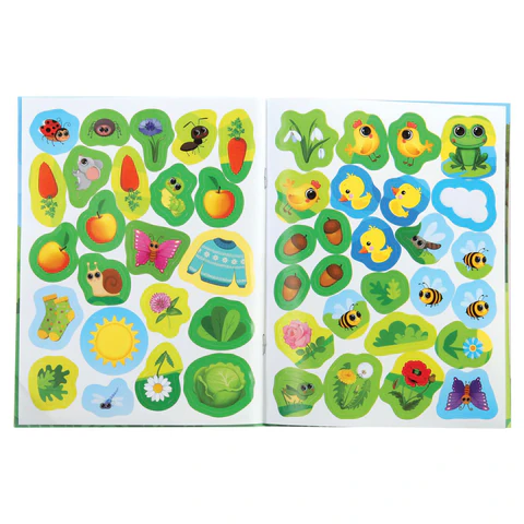 Книжка с наклейками "НАКЛЕЙКИ МАЛЫШАМ" помогает ребенку развивать внимание, логическое мышление и мелкую моторику.
