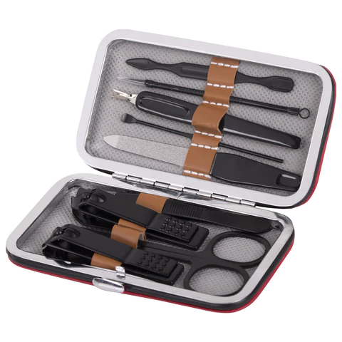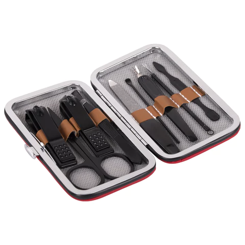Состав набора: ножницы, игла Видаля, книпсеры (2 шт.), лопатка для кутикулы, шабер, нож для кутикулы, пилочка для ногтей, пинцет.