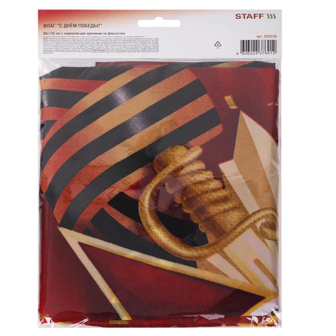 Яркое изображение с двух сторон флага. Полотно флага оснащено карманом под флагшток, есть закрепляющие завязки снизу. Максимальный диаметр флагштока - 3 см. Флаг выполнен из плотного полиэстера. Размер - 90х135 см, плотность материала - 68 ден. Флагшток не входит в комплект.