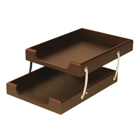 Все предметы изготовлены из дерева цвета "орех" с золотистой фурнитурой. Набор упакован в подарочную коробку, а также дополнительно в защитный гофрокорб для транспортировки.