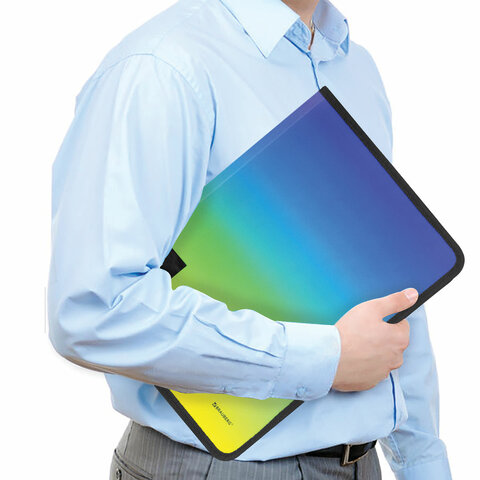 Изготовлена из прочного непрозрачного матового пластика толщиной 600 микрон. Формат А4 (330x240 мм). Надежный замок-молния защищает документы от механических повреждений, пыли и влаги. Папка представлена в эффекте градиент.