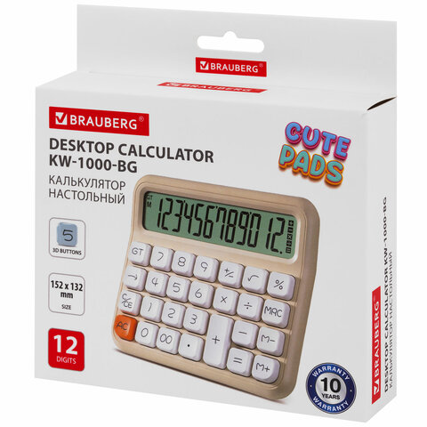 BRAUBERG KW-1000 — настольный калькулятор с эргономичным дизайном: объемные 3D-кнопки обеспечивают тактильный комфорт при работе, а лаконичный корпус выглядит стильно и современно.